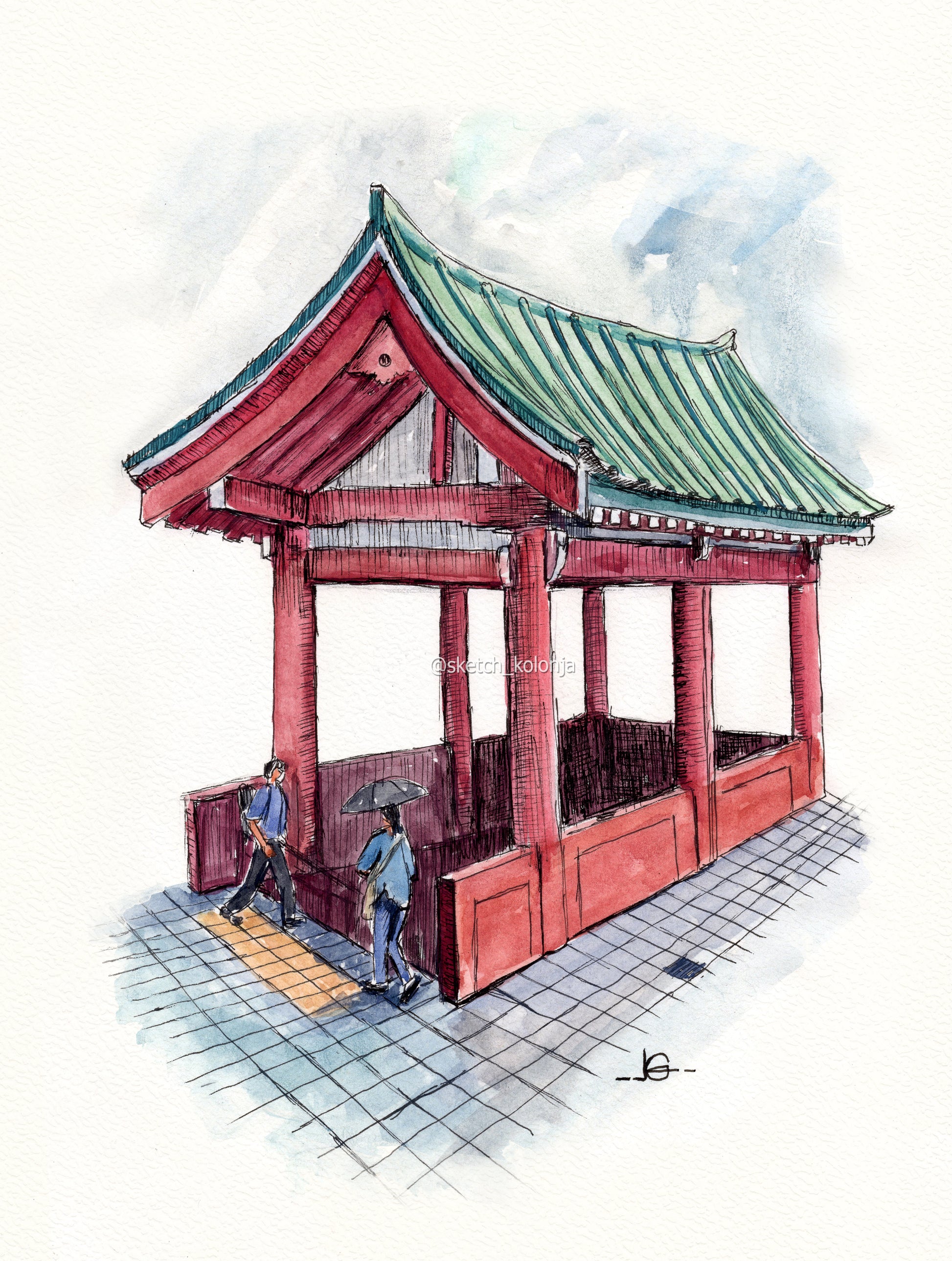 I will create a unique hand-drawn sketch using fine ink lines and subtle watercolor washes.